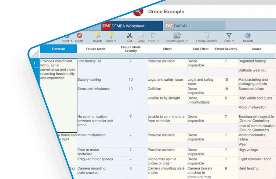 Engineered for today’s fast-paced engineering environments, Relyence FMEA software empowers your teams to achieve unparalleled efficiency and accuracy in FMEA management. The intuitive, browser-based platform not only supports all major methodologies — Design FMEA (DFMEA), Process FMEA (PFMEA), and Monitoring and System Response (FMEA-MSR) — but also guarantees full compliance with standards such as the AIAG & VDA.